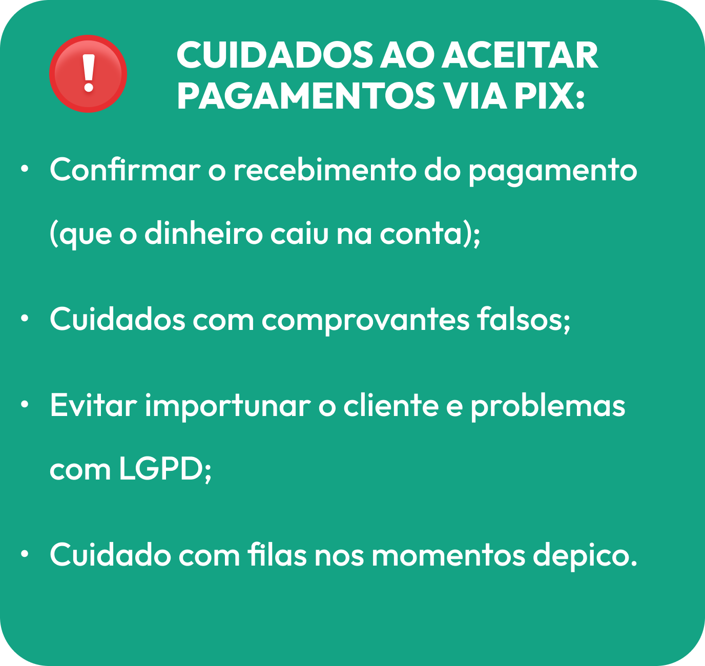 Segurança, confirmação de recebimento e agilidade no recebimento de pagamentos via PIX e outros.